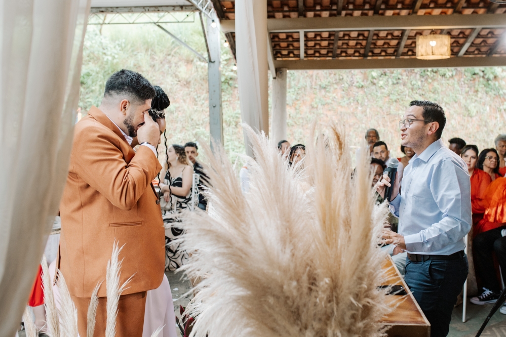 Tudo começou de forma surpreendente: Daniel sentiu que Deus o inspirava a marcar o casamento para o dia 14 de dezembro. Curioso e tocado, conferiu sua agenda e, para sua surpresa, o sábado estava livre. Sem hesitar, compartilhou com Stela — com quem namorava há apenas três meses — o desejo de oficializar a união. Com o sim dela, iniciaram juntos os preparativos da cerimônia. No grande dia, Daniel usou no pulso uma pulseira com o símbolo da sua fé cristã: uma cruz, representando a espiritualidade que uniu o casal.