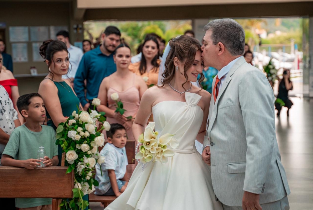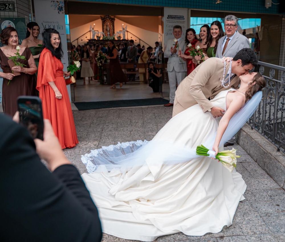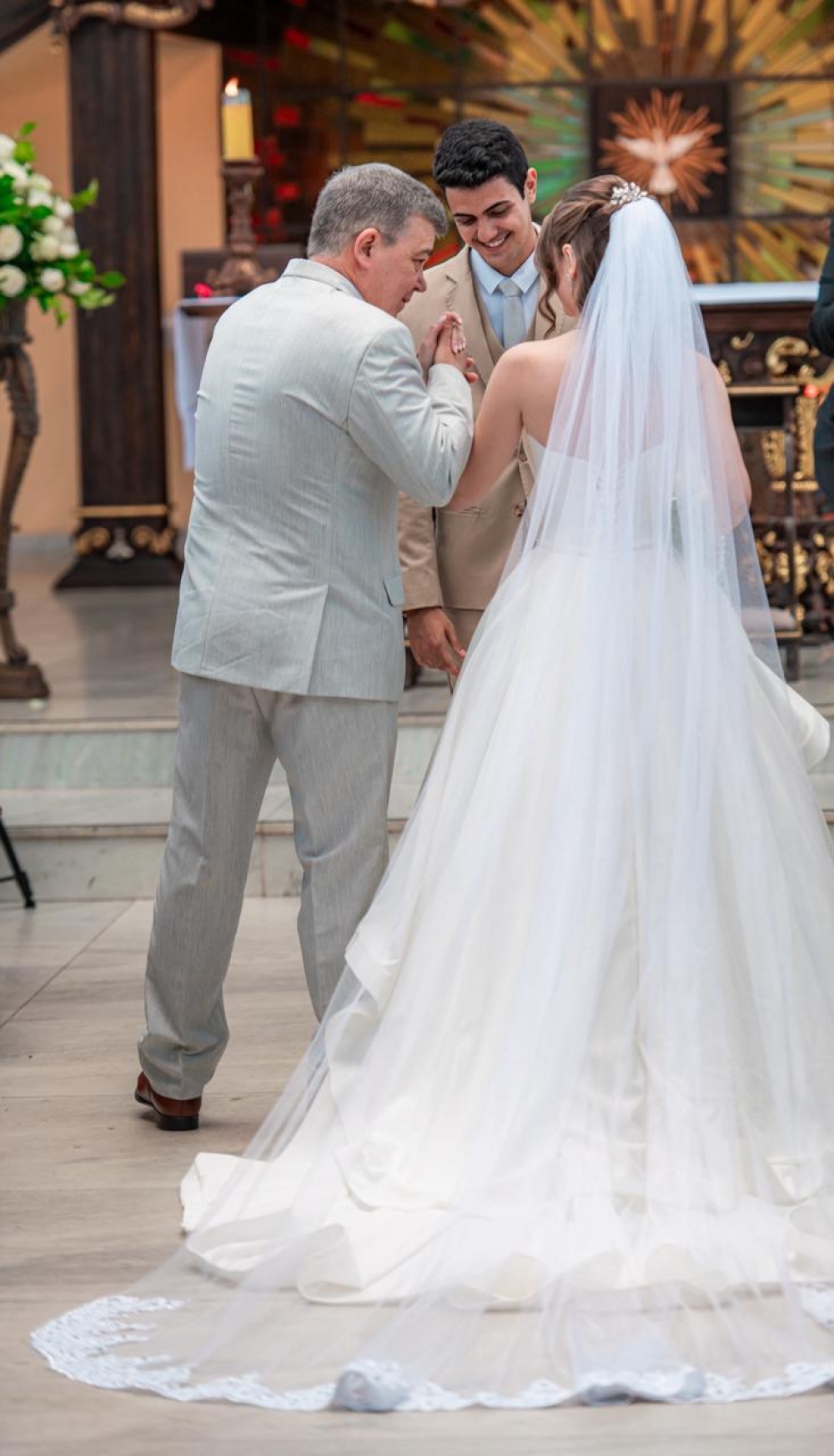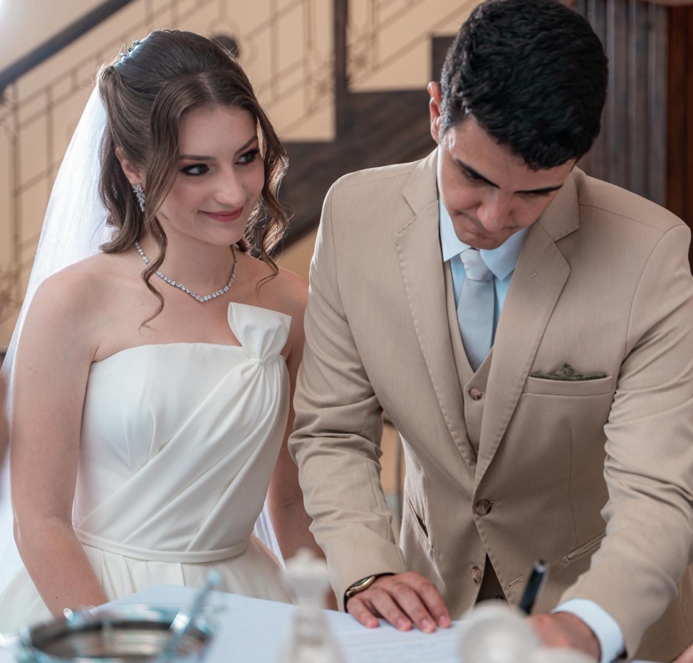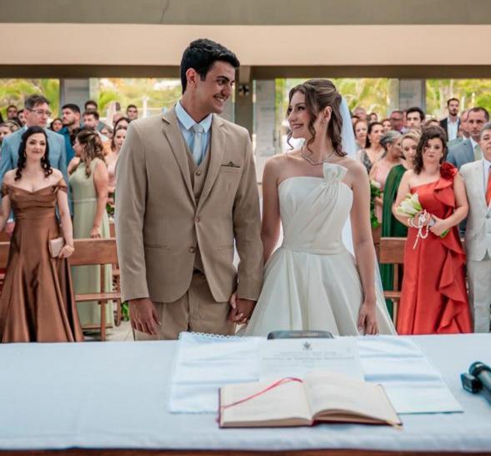A noiva, advogada, influenciadora digital e empreendedora, estava deslumbrante. O noivo, administrador de empresas, esbanjava elegância. Um dia inesquecível para os noivos, familiares e amigos que testemunharam esse momento tão especial.