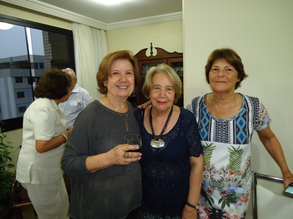 A aniversariante Celina Toledo com suas amigas Edna Cazarini e Ana Célia Faria.