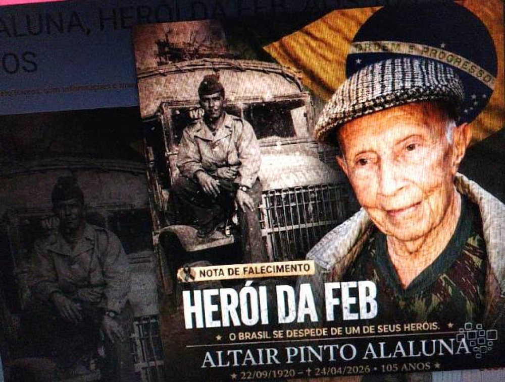 Morreu aos 105 anos, Altair Pinto Alaluna, um dos últimos ex-combatentes vivos da Segunda Guerra Mundial pela Força Expedicionária Brasileira (FEB).
