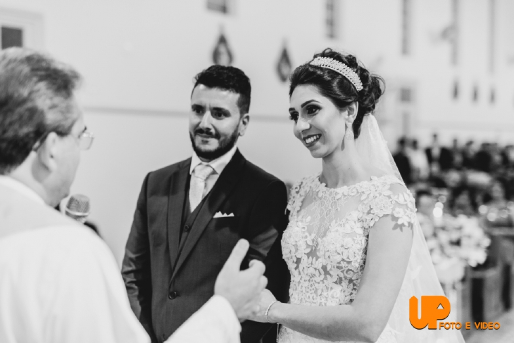 Dr. Willys Vilas Boas e Zuleica caminham para o altar, levando uma faixa. A faixa, na realidade, é a estola do Padre Jésus, que fez o casamento dos três filhos do Dr. Willys Vilas Boas e de Zuleica: Lilian, Willys Junior e, agora, Israel. Em todas as celebrações, o sacerdote usou a mesa estola. E agora, neste último casamento, Padre Jésus bordou os nomes dos casais e deu de presente aos pais do noivo.