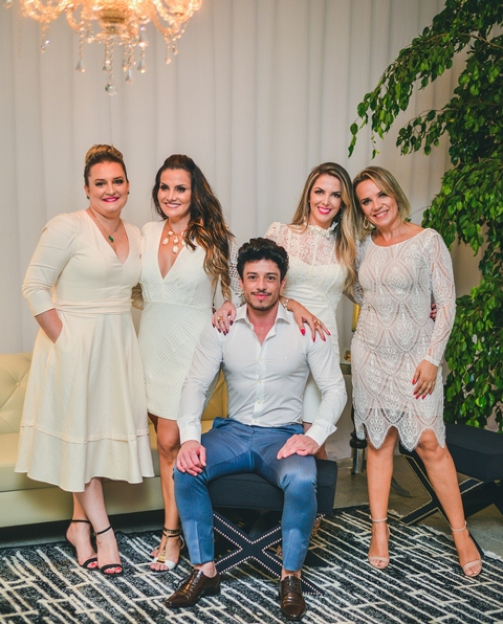 O hair stylist Júlio Henrique Ferreira com as belas: Silvia Viola Riêra Salomon, Lara Kallás Mouallem, Kamila Avelar e Andréia Ferrer de Souza Gorgulho, escrivã judicial.