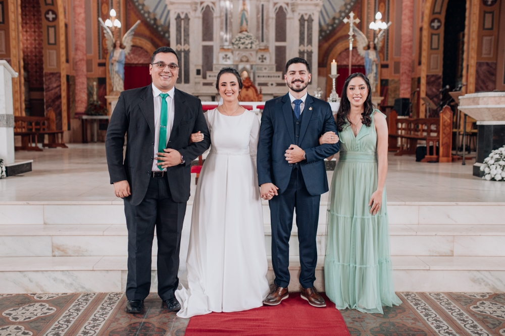 O noivo João Vitor com sua irmã Maria Clara; sua mãe, Aparecida Célis Batista Siqueira do Amaral; seu pai, João Vitor Siqueira do Amaral, e sua outra irmã, Ana Heloisa.