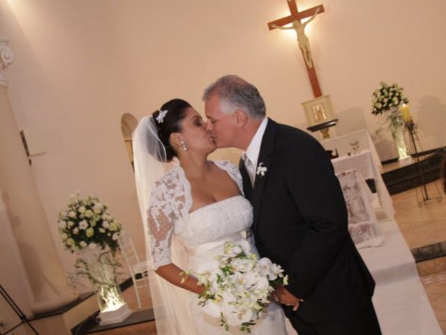 A Dra. Márcia Cristina, estava linda no seu vestido de noiva assinado pelo estilista Manuel Mota, que usou cetim e renda francesa. A renda ganhou bordado clássico e chic.