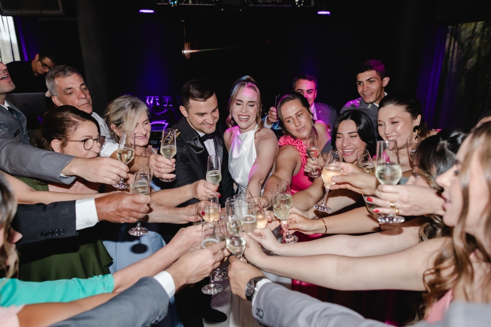 Os noivos destacaram a alegria de poder reunir tantas pessoas queridas em um só lugar, celebrando o amor e a amizade.
