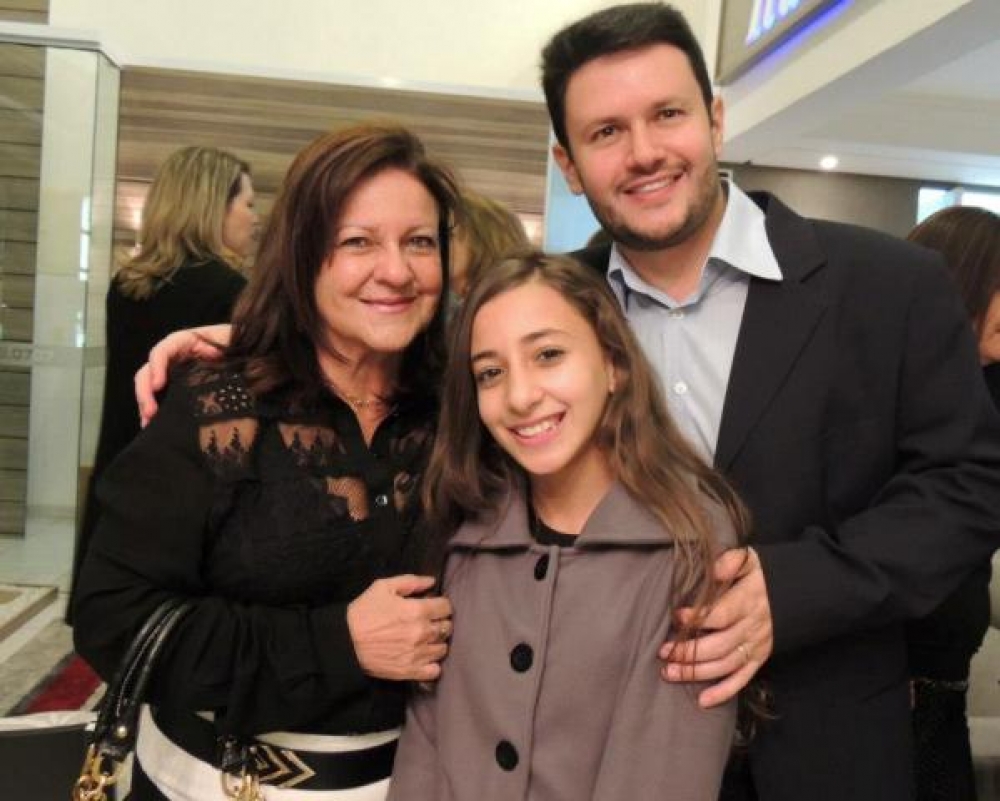 Suely Mota com a neta, Júlia Ricotta, e o filho, Arthur Leite.