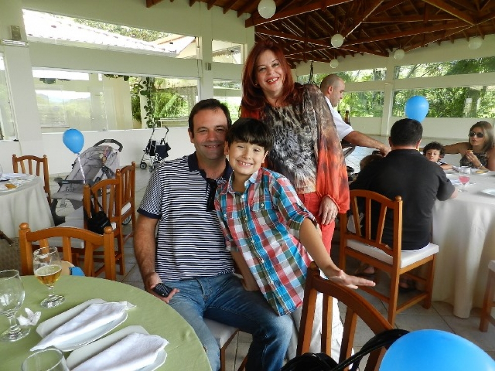João Pedro Brites com o papai, Carlos Brites, e a titia do coração, Paula.