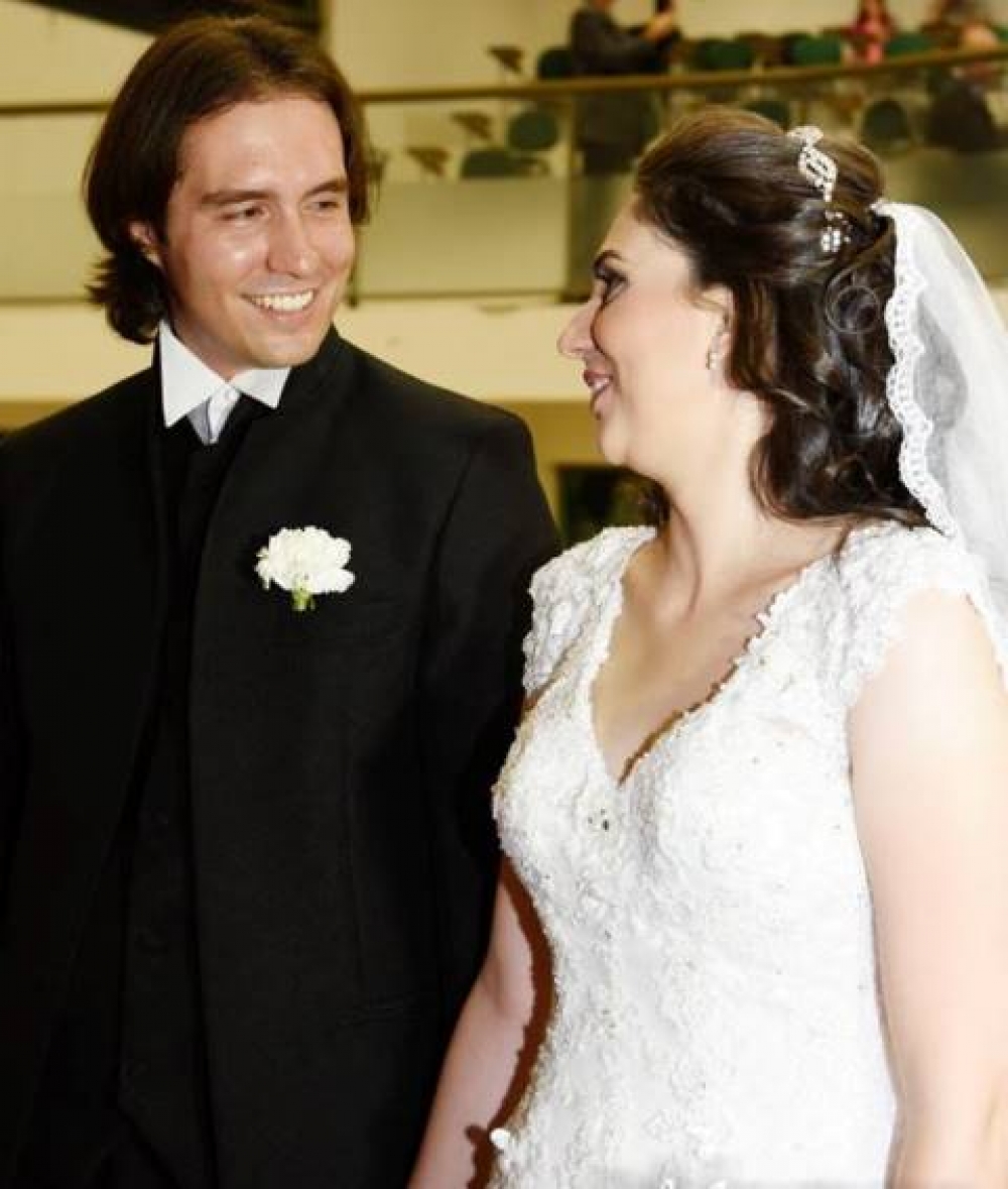 O vestido da noiva, de tule todo bordado, com o véu retrô, da grife Márcia Noivas & Festas, encheu os olhos dos convidados de admiração. Aline de Paula cuidou do seu visual.