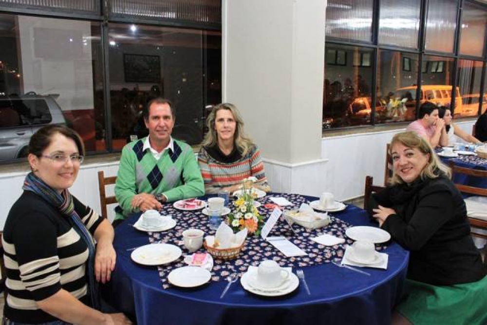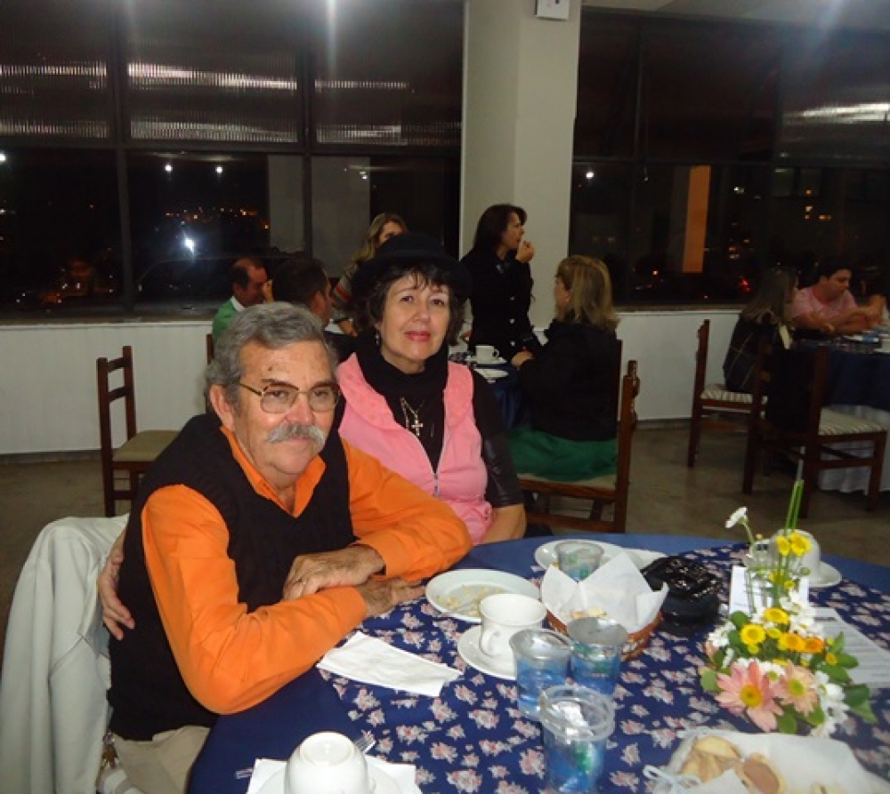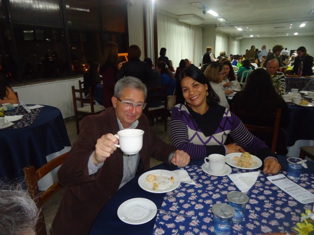 Júlio César Santana, diretor do CEAK, foi com a esposa, Rosana. Eles saborearam o chá ao lado das amigas.