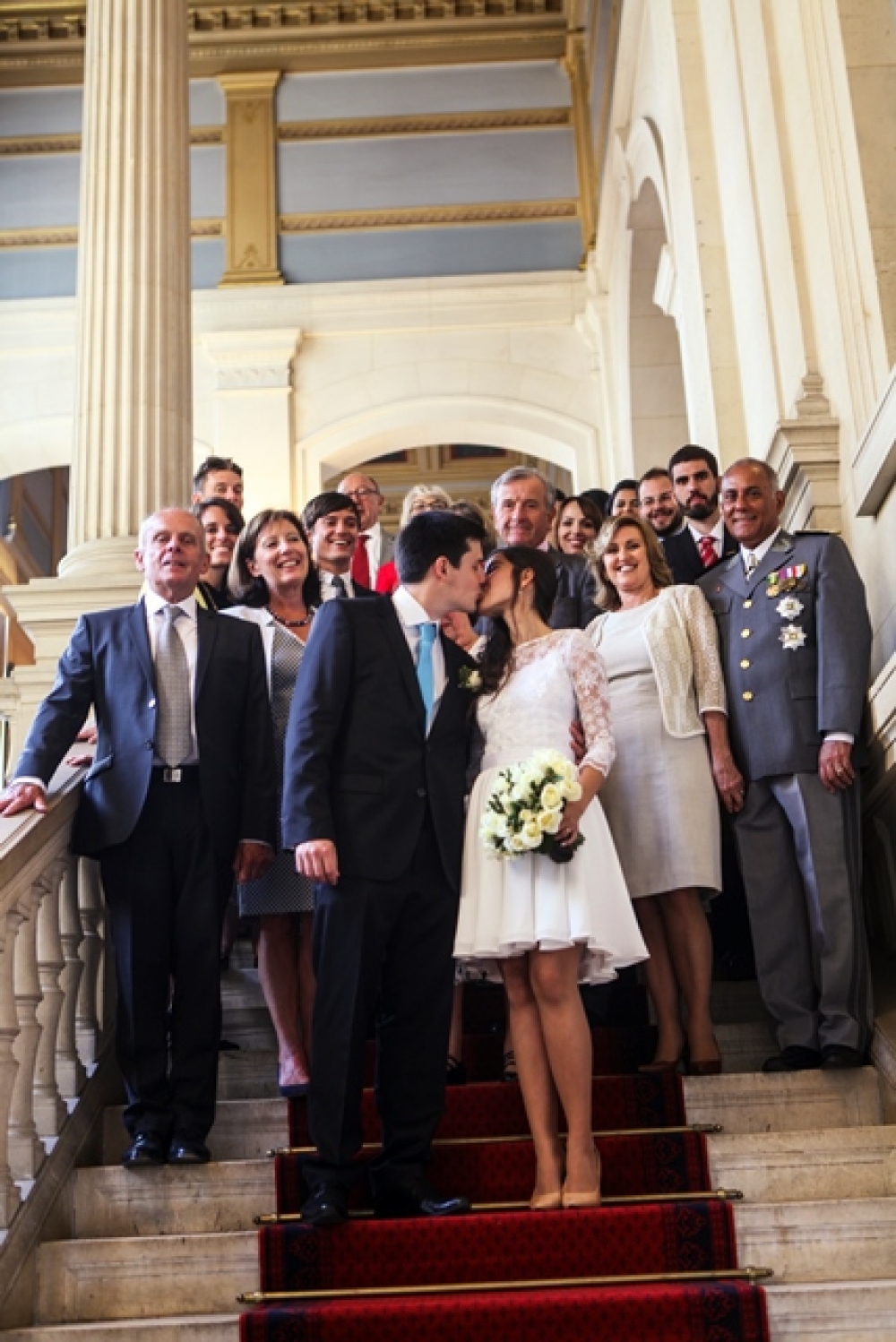 Junto deles na foto, o irmão de Fernanda, o gato Leandro; os irmãos do noivo, Gregoire e Dorothée, e a prima Priscila Souza. À direita, estão Alcione Fermiano e Ana Carolina Soler, que foram testemunhas.